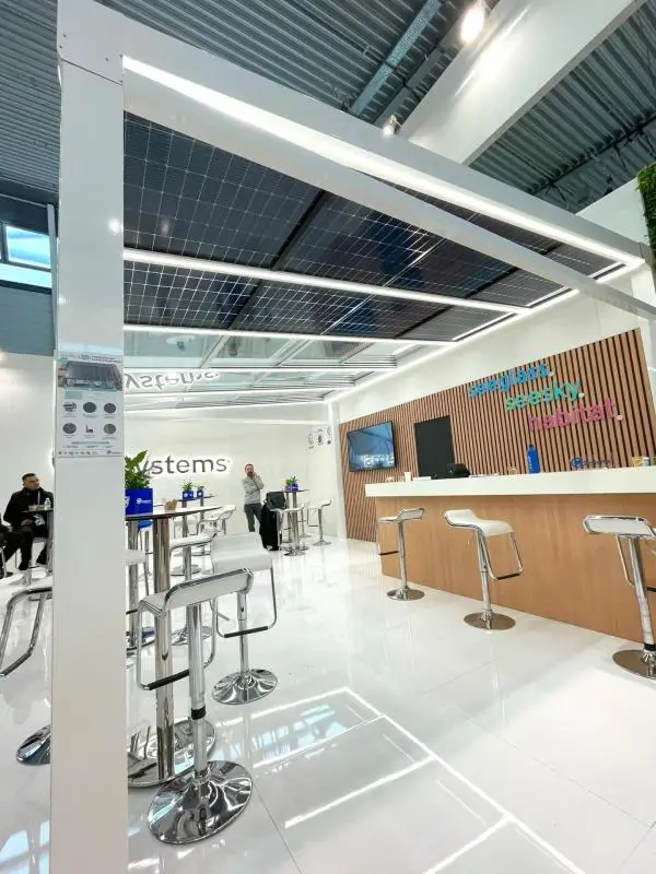 Die Beschattungstechnik, wie sie auf der R+T präsentiert wurde, hebt ihre umweltfreundliche Ausrichtung hervor. Nachhaltige Materialien oder Solarmodule in den Lamellen von bioklimatischen Pergolen und die interessante Verwendung dieser Module in der Überlappung einer festen Pergola (siehe Fotogalerie) werden die Zukunft prägen. Auch CLIMAX bietet Solarmodule an.